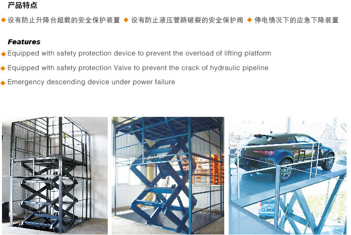 產品結構堅固,承載量大,平臺尺寸大小選擇性大,升降平穩,安裝簡單,維護方便,是經濟、實用的低樓層間替代電梯,實現貨物升降的理想貨物運送設備。